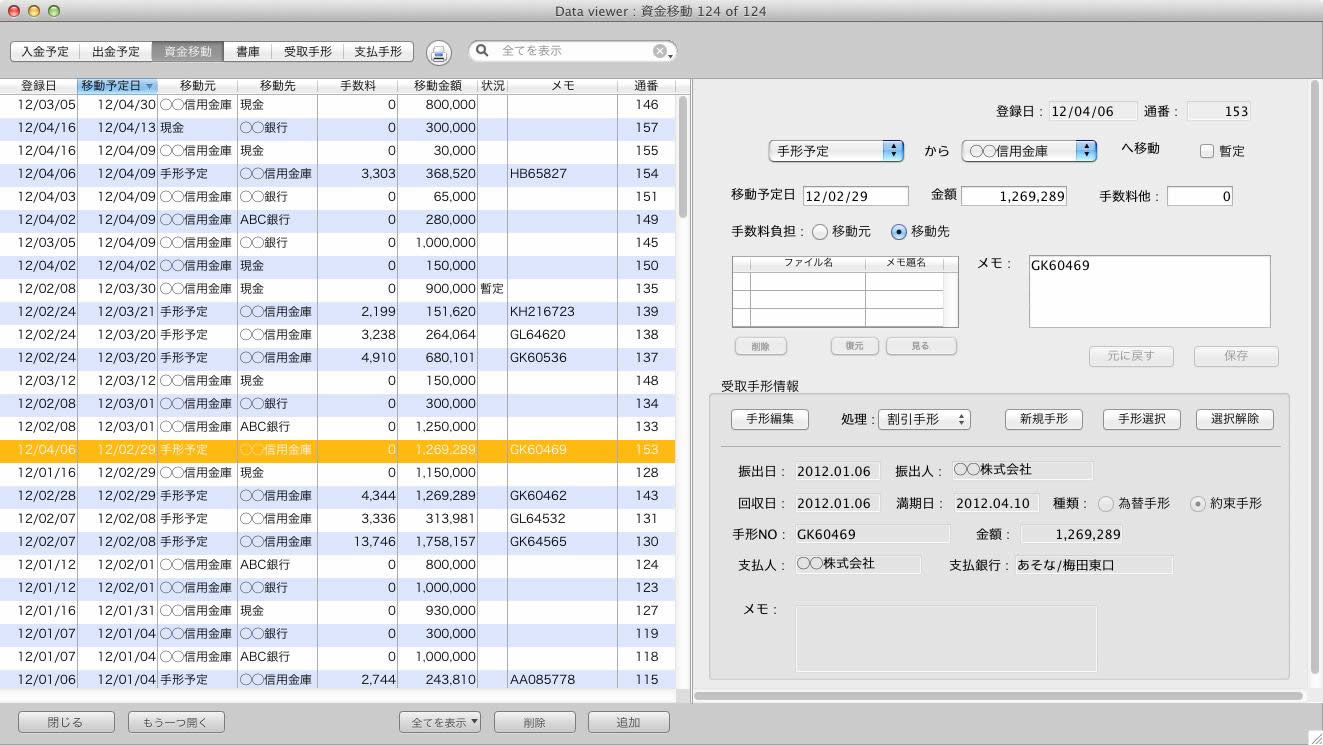 受取手形を入金予定、資金移動へリンク、支払手形を出金予定へのリンクさせて管理できます。
